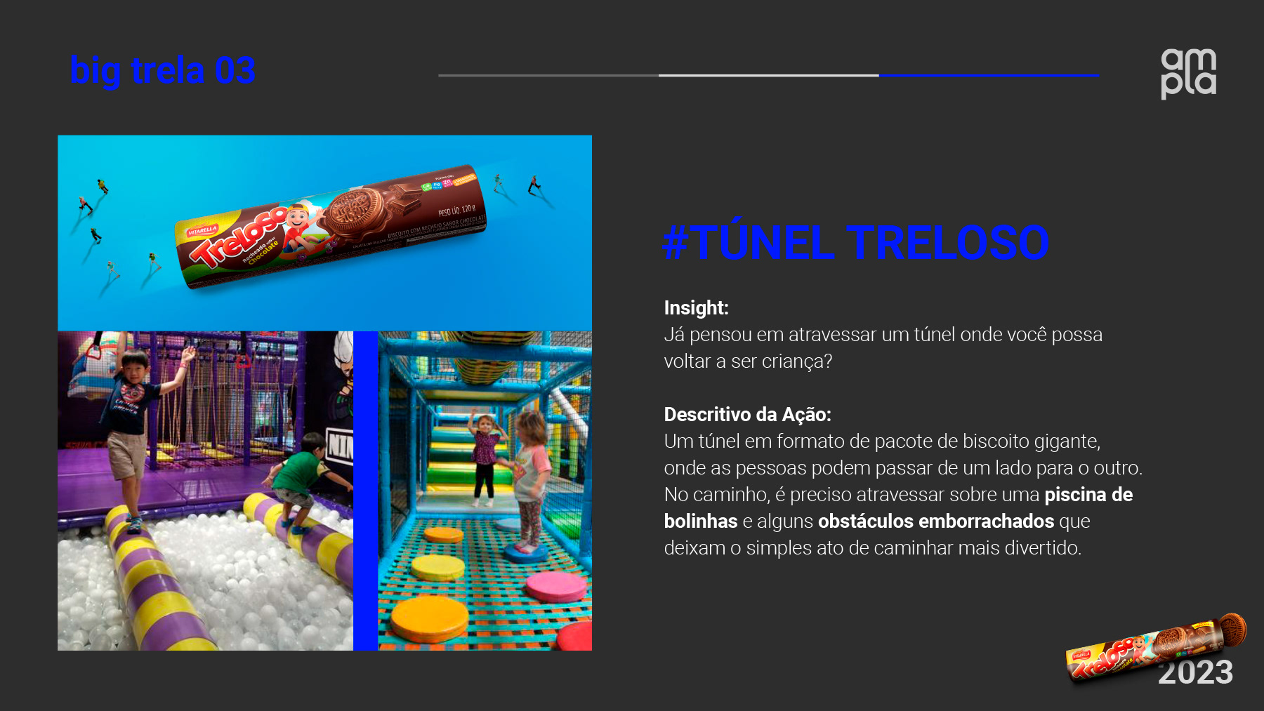 Imagine um pacote de biscoito gigante recheado de brincadeiras do começo ao fim. Agora pare de imaginar e conheça o Túnel Treloso, uma estrutura de 30 metros com muita trela (diversão) para estreitar os laços entre pais e filhos, que tive a oportunidade de participar como redator, da concepção do túnel até a campanha de divulgação.